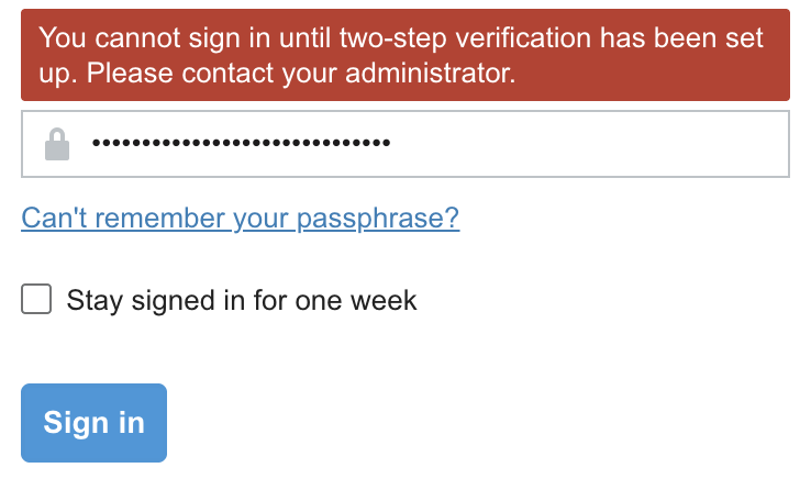 - When they try to sign in, they’ll see a message explaining that two-step verification is required.
